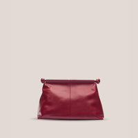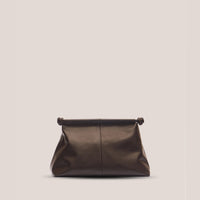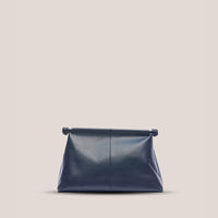 The Kiara Clutch, crafted from refined calfskin leather, features a pyramid shape that exudes elegance. It sleek design offers versatility, allowing it to be folded and tucked under the arm for a chic, hands-free style.