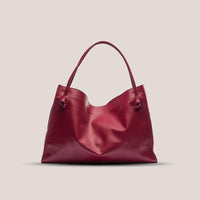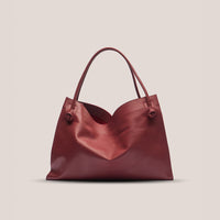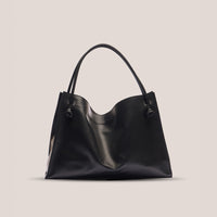 The Ter Tote Bag is a soft, lightweight, deconstructed design crafted from refined calfskin leather. Its interior architectural draping creates an elegant sense of volume, allowing the bag to hold its shape while maintaining a silky, relaxed modern feel.